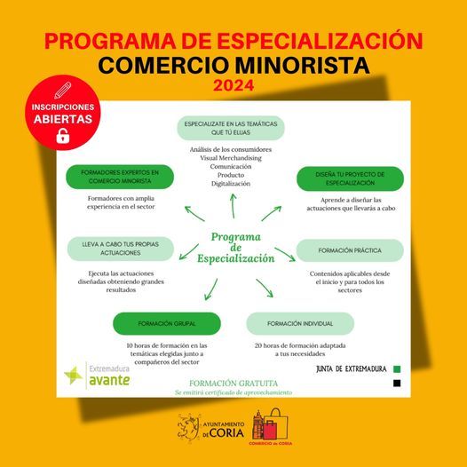 El departamente de Comercio de Coria ha abierto el plazo de inscripciones para la fase previa de orientación para el Programa de Especialización para el Comercio Minorista 2024.