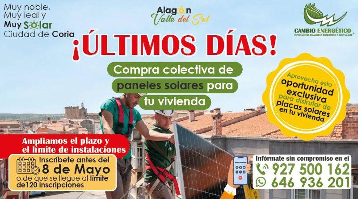 La iniciativa 'Alagón, Valle del Sol', que tiene por objetivo convertir el Valle del Alagón en la comarca de España con más instalaciones de autoconsumo ... por habitante, va camino de convertirse en realidad dado el gran número de solicitudes recibidas para instalar placas solares.