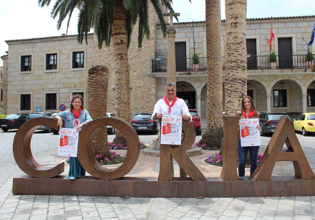 El Alcalde de Coria, José Manuel García Ballestero, junto a la Concejal de Desarrollo Local, Almudena Domingo, y la Vocal de Jóvenes Empresarios y Nuevas Tecnologías de ASECOC, Marta Alfonso, han animado a la ciudad de Coria a comprar en el comercio de proximidad durante estas semanas previas a las Fiestas de San Juan.
