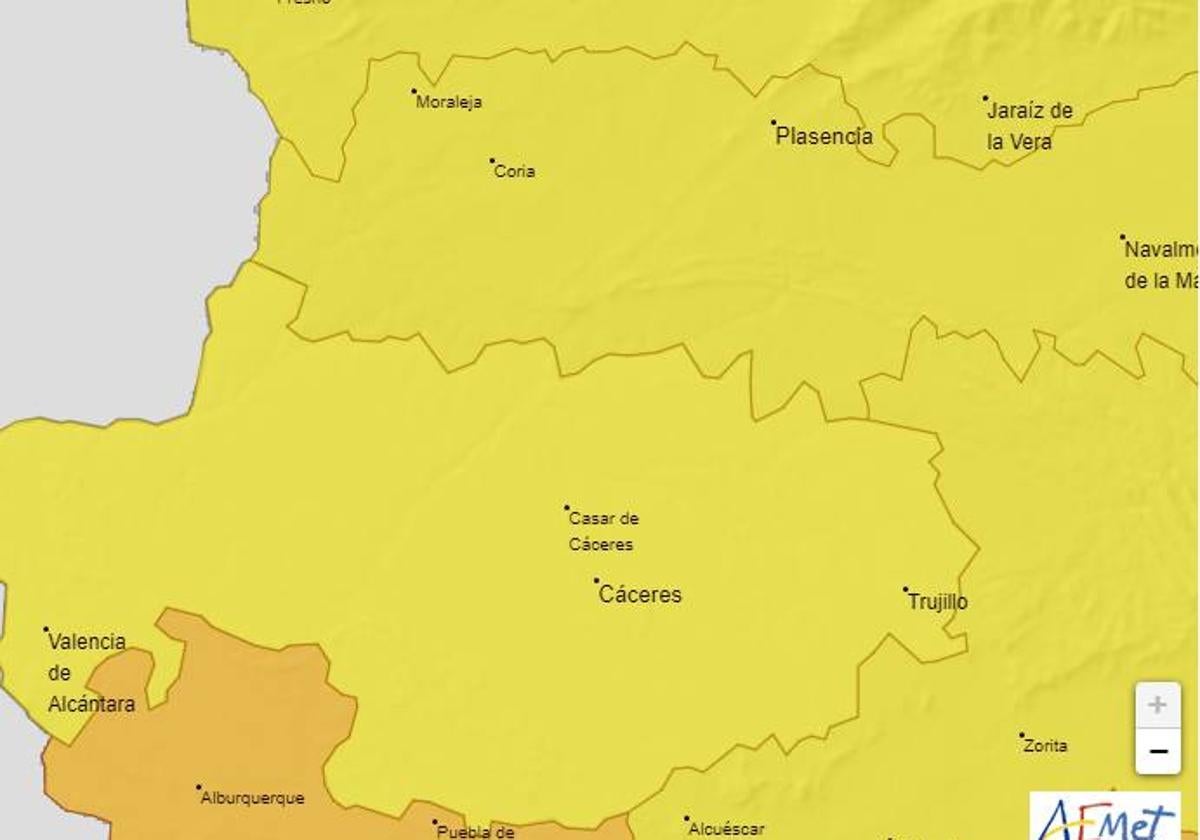 Cáceres vuelve a estar en aviso amarillo por altas temperaturas, donde las temperaturas alcanzarán este lunes los 39 grados, sobre todo en el Valle del ... Alagón.