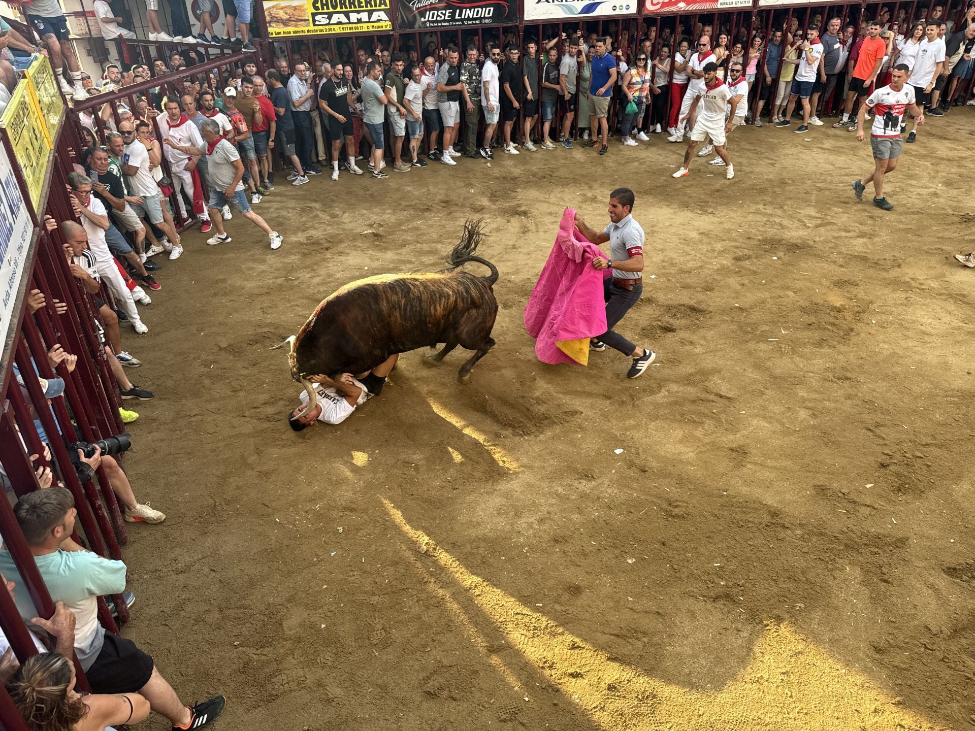 Sin embargo, poco antes del toque de la segunda campanada, se ha vivido un momento de tensión. Un hombre que participaba en la lidia desde una posición cercana al toro se resbaló accidentalmente, cayendo al suelo. En cuestión de segundos, «Ayende» se percató de la situación y se dirigió hacia el hombre, revolcándolo por el suelo. La escena, llena de dramatismo, dejó sin aliento a los espectadores.
