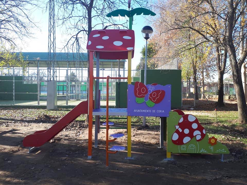 El Ayuntamiento de Coria, siguiendo con la línea de apostar por las zonas infantiles en la ciudad, y teniendo en cuenta que es importante que ... los más pequeños necesitan jugar y disfrutar al aire libre, ha instalado un nuevo parque infantil en la zona del Polideportivo municipal y en Rincón del Obispo, junto a la casa de cultura.