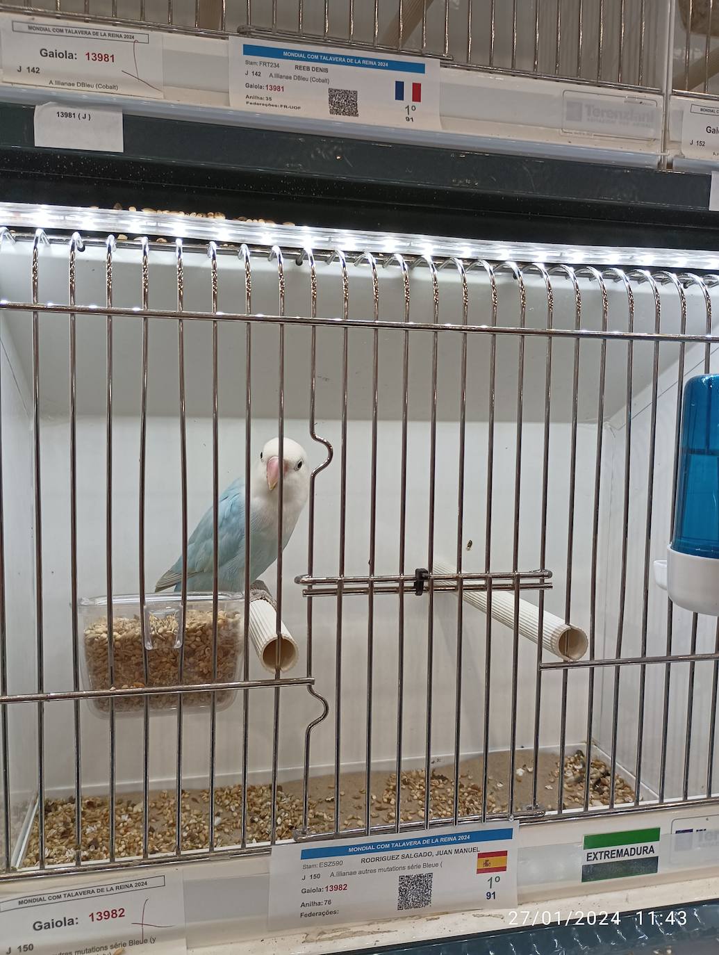 El cauriense ha conseguido hacerse con el primer premio a nivel mundial que ha traído orgulloso a la ciudad de Coria. Ha participado en la categoría de agapornis lilianaes quedando 1 y 2. El jurado valoró que en cada especie el ave cumpliera con un estándar que está fijado y, a partir de ahí que fuera perfecto de pluma, sin heridas y, que se clasificara en su grupo participante.
