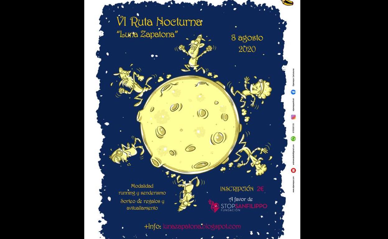 En esta ocasión será a beneficio de la fundación Stop Sanfilippo, una fundación que ayuda a la investigación y a las familias de los niños con la enfermedad de Sanfilippo, considerada también el alzhéimer infantil. La información está detallada en el blog de la prueba https://lunazapatona.blogspot.com/