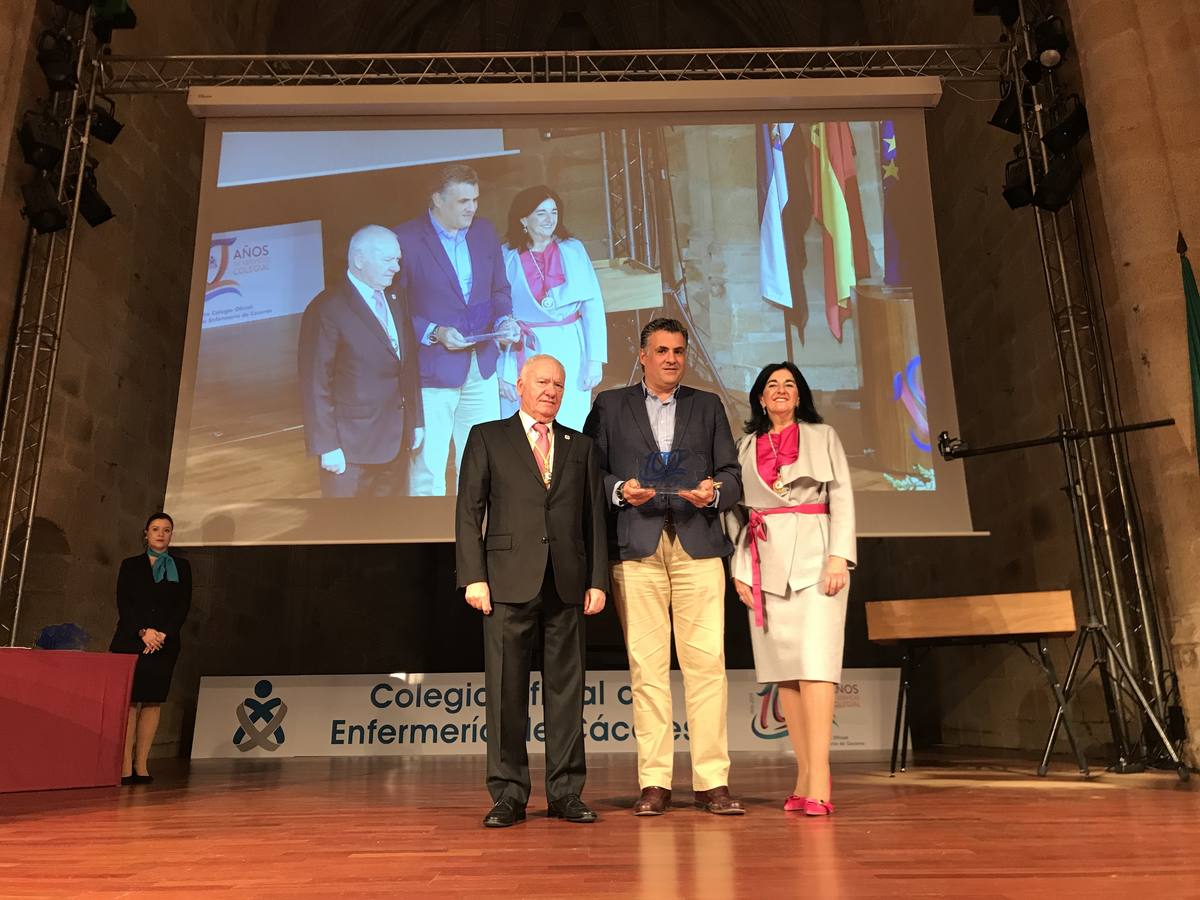 El alcalde de la ciudad, José Manuel García Ballestero, fue el encargado de recoger dicho reconocimiento de manos del presidente del Consejo General de la Enfermería de España, Florentino Pérez Raya y de la presidenta del ilustre Colegio de Enfermería de Cáceres, Raquel Rodríguez Llanos.