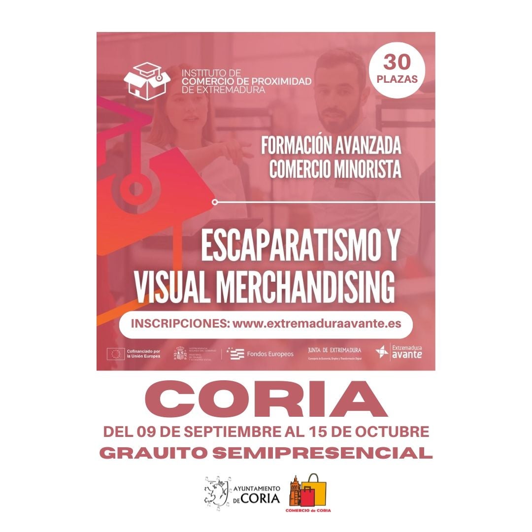 La Junta de Extremadura, a través de Extremadura Avante, organiza la formación «Escaparatismo y Visual Merchandising para Comercio Minorista», que se celebrará a partir del ... próximo 9 de septiembre hasta el 15 de octubre de 2024.