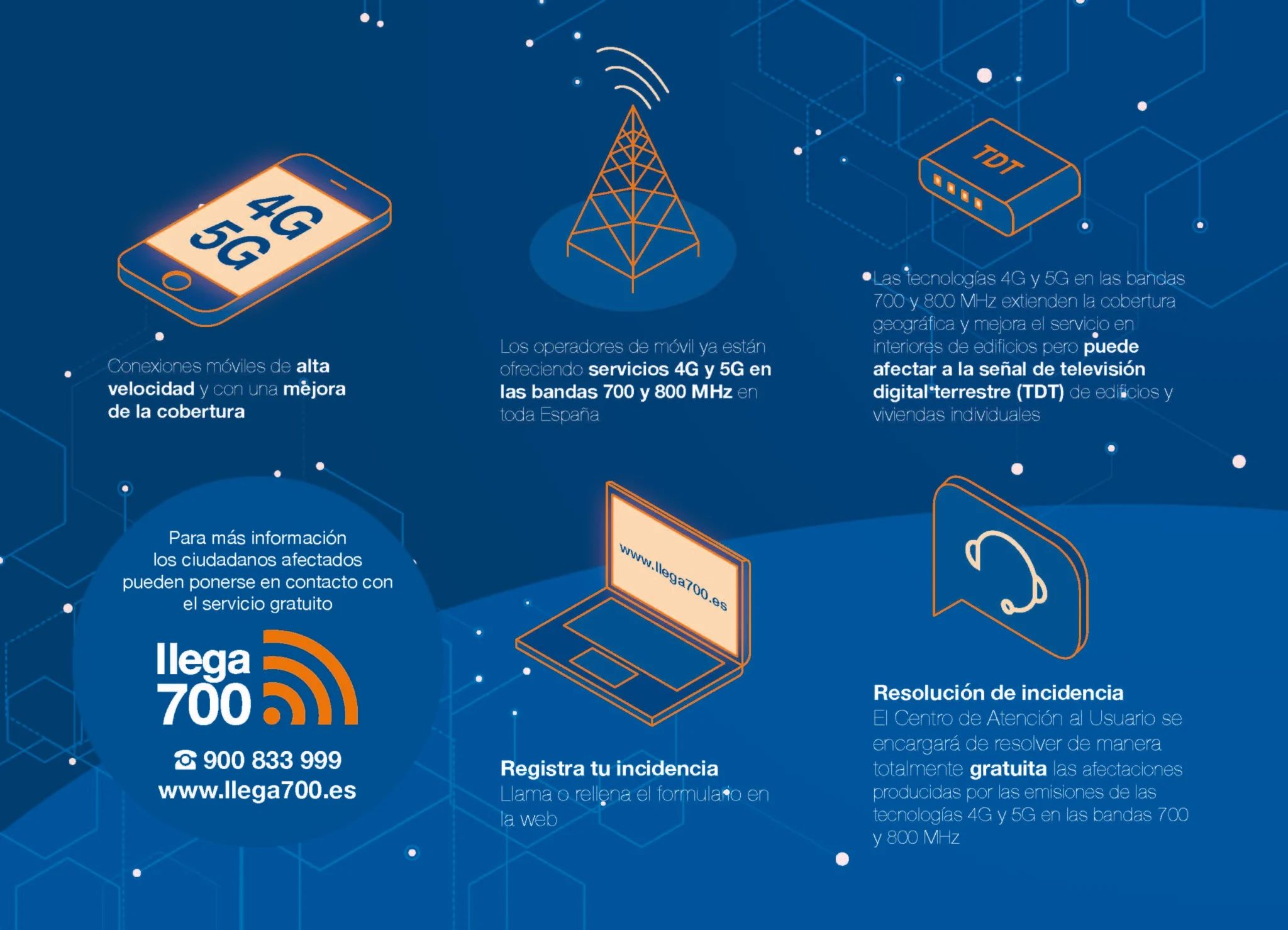 De este modo, para garantizar la compatibilidad de la nueva tecnología con la televisión digital terrestre (TDT), Llega700 es la entidad puesta en marcha por los operadores para solucionar cualquier afectación en la recepción de la señal de televisión.