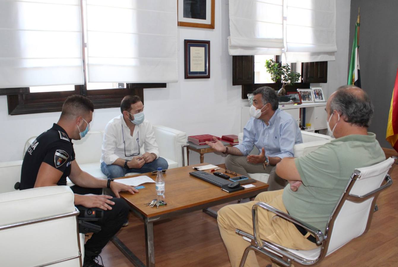El primer edil, ... José Manuel García Ballestero, mantuvo una reunión con el jefe de la policía local, Javier Cuenca y el Presidente de la Asociación del Barrio de Santiago (Moscoso), José María Rodríguez Valcárcel, para ultimar todas las medidas de seguridad de cara a la reapertura del mercadillo semanal de los jueves y organizar la distribución del mismo.