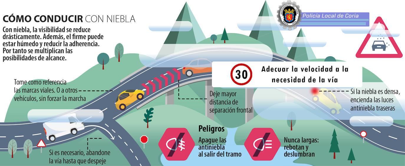 Como cada año, comienza la temporada de nieblas y la Policía Local de Coria ha querido recordar algunas recomendaciones