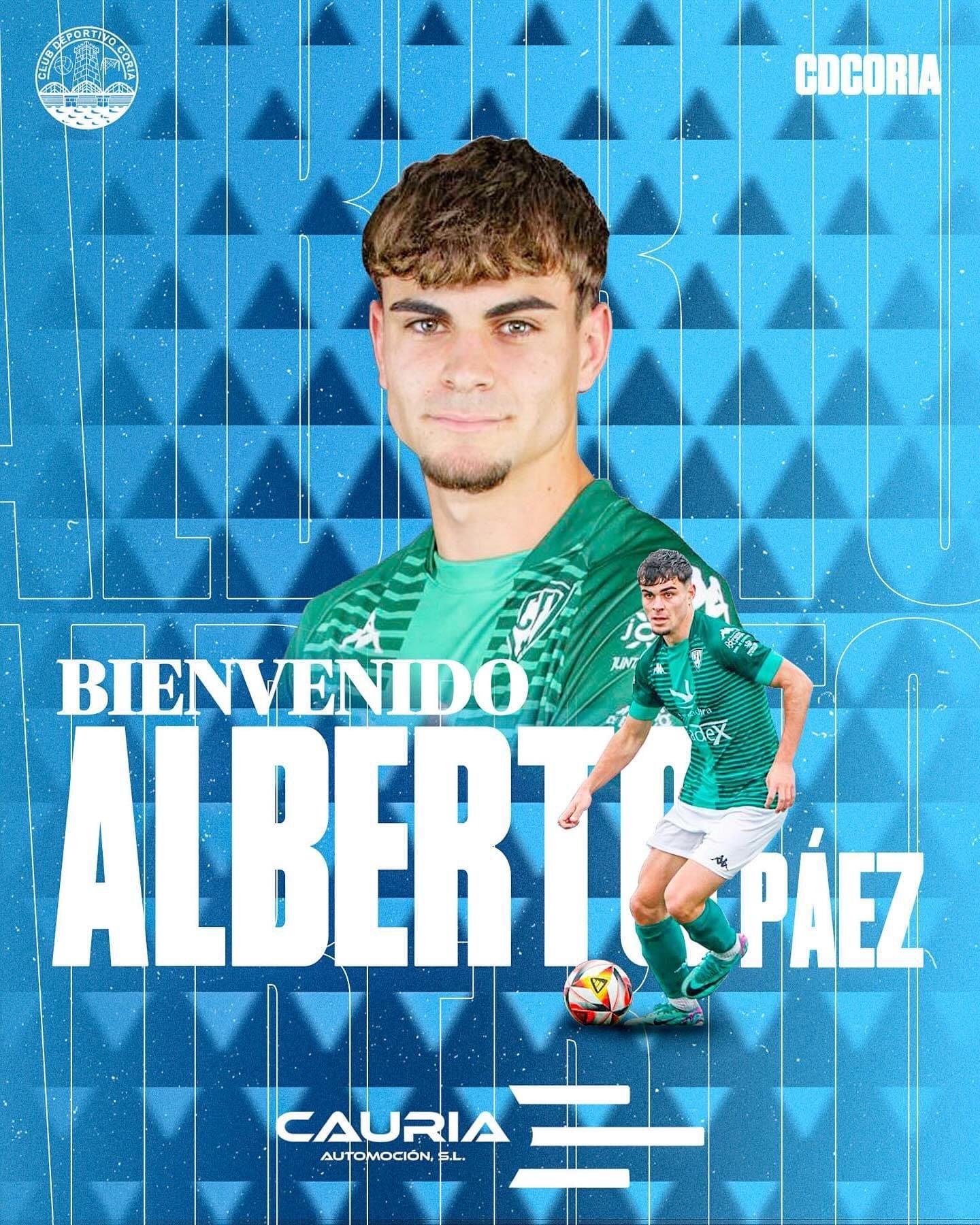 El CD Coria ha anunciado la incorporación de Alberto Páez a su plantilla para la temporada 24/25. Nacido en Las Palmas en 2005, Páez ... se convierte en el quinto fichaje del equipo.