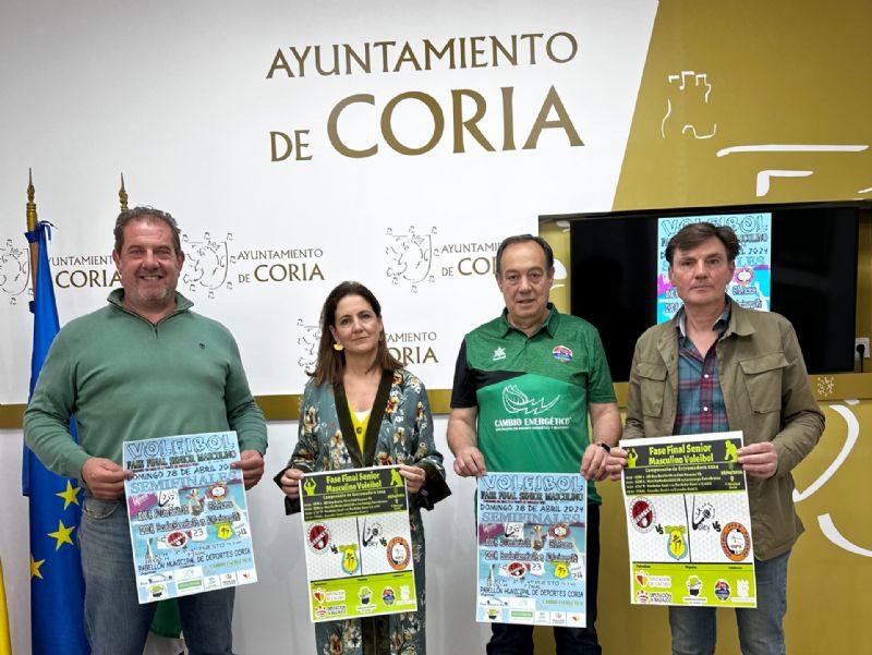 En el Ayuntamiento de Coria, ha tenido lugar la presentación en rueda de prensa de la Fase Final de Voleibol en la categoría Senior Masculino. El evento ha sido presentado por la Alcaldesa de la Ciudad, Almudena Domingo y el Secretario de la Federación Extremeña de Voleibol, Enrique Carrasco, acompañados por el concejal de deportes, Juan Manuel Gutiérrez y el secretario del Club Voleibol Coria, Justo Prieto.