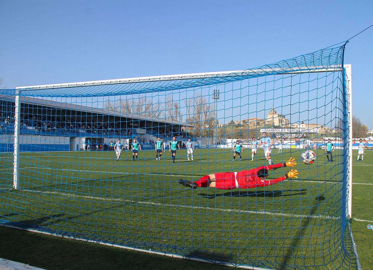 El Coria, tras su brillante triunfo en el campo la Era de las Matas de Malpartida de Plasencia, donde el conjunto de las Vegas del Alagón, además del buen juego que ofreció en todas sus líneas, consolidó ese segundo puesto que ostenta en la tabla, este domingo recibía a un rival que otras temporadas le ha puesto las cosas difíciles a los celestes, como es el Calamonte, pero que en la actualidad el Coria es muy superior ya que los números cantan con una diferencia de puntos a favor de los caurienses que debería traducirse sobre el terreno de juego. Un Calamonte que el pasado jueves y en partido que en su día fue suspendido por la Covid-19 cosechó un meritorio empate frente al Moralo en un encuentro donde fue superior a los del Campo Arañuelo y que en el tiempo de descuento y tras haber fallado un penalti unos minutos antes, hicieron que los de Navalmoral se llevaran un empate.