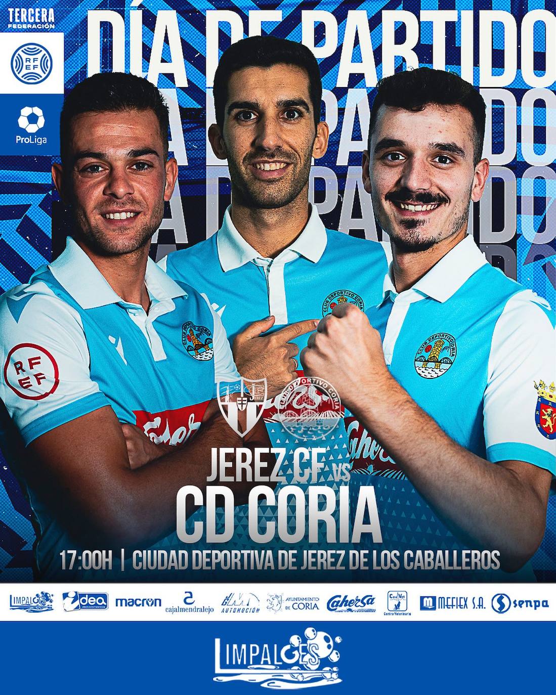 Está previsto que está tarde el CD Coria se enfrente por fín al Jerez CF a las 17:00 horas en la Ciudad Deportiva de Jerez de los Caballeros «Manuel Calzado».