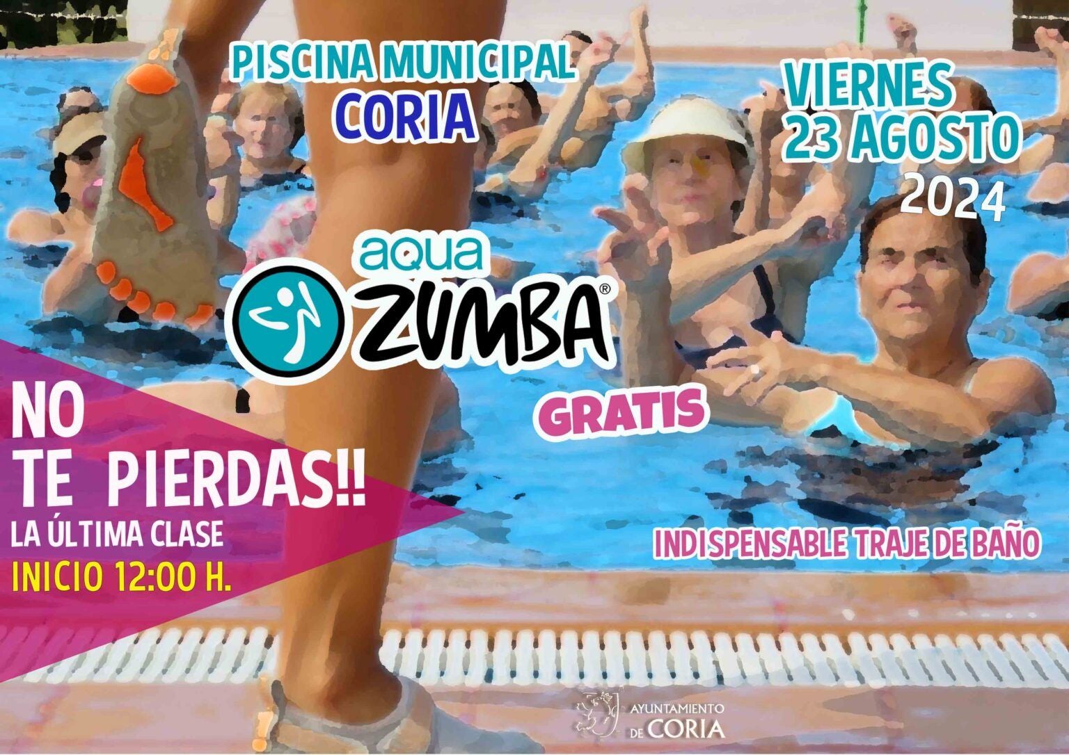 La Concejalía de Deportes del Ayuntamiento de Coria finalizará los Cursos de Aquaerobic, que se están llevando a cabo en las Piscinas Municipales de Coria, Puebla de Argeme y Rincón del Obispo, organizando una jornada festiva de Aquazumba.