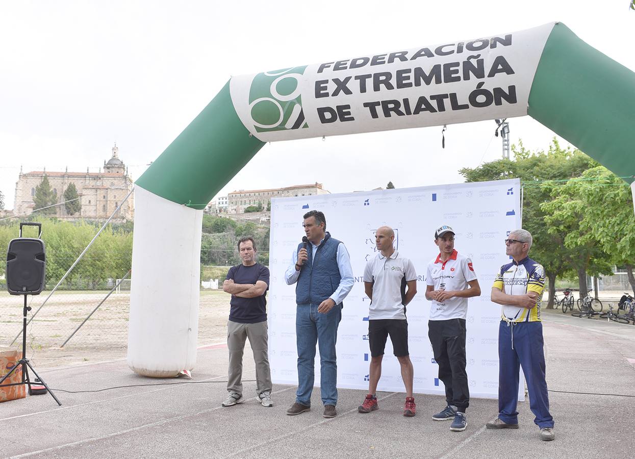 En el acto de presentación de la prueba estuvieron presentes el alcalde, José Manuel García Ballestero; el presidente de la Federación Extremeña de Triatlón, José Manuel Tovar; el reciente campeón extremeño de triatlón, Diego Paredes, y representantes del Club Ciclista Cauriense.