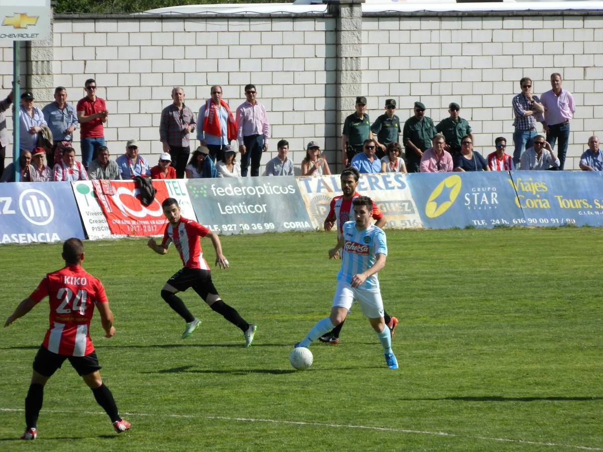 Los últimos minutos el Coria se la jugó pasando Mahillo a la demarcación de delantero centro y Herrero ocupó el eje de la defensa, pero la suerte estaba echada y el Coria no pudo conseguir el sueño de la cuarta plaza, a pesar de haber realizado una espléndida temporada.