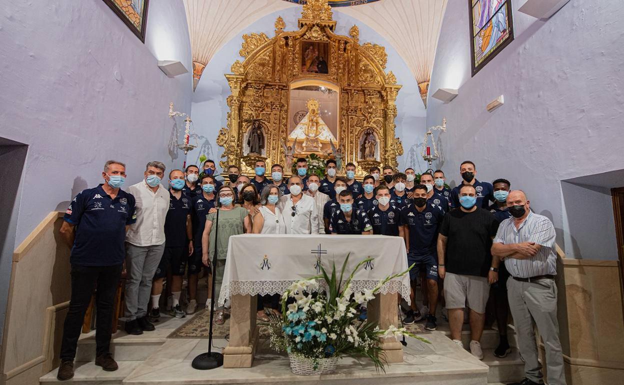El acto comenzó con la entrega a la Morenita de un centro de flores por parte de los dos capitanes de la plantilla.