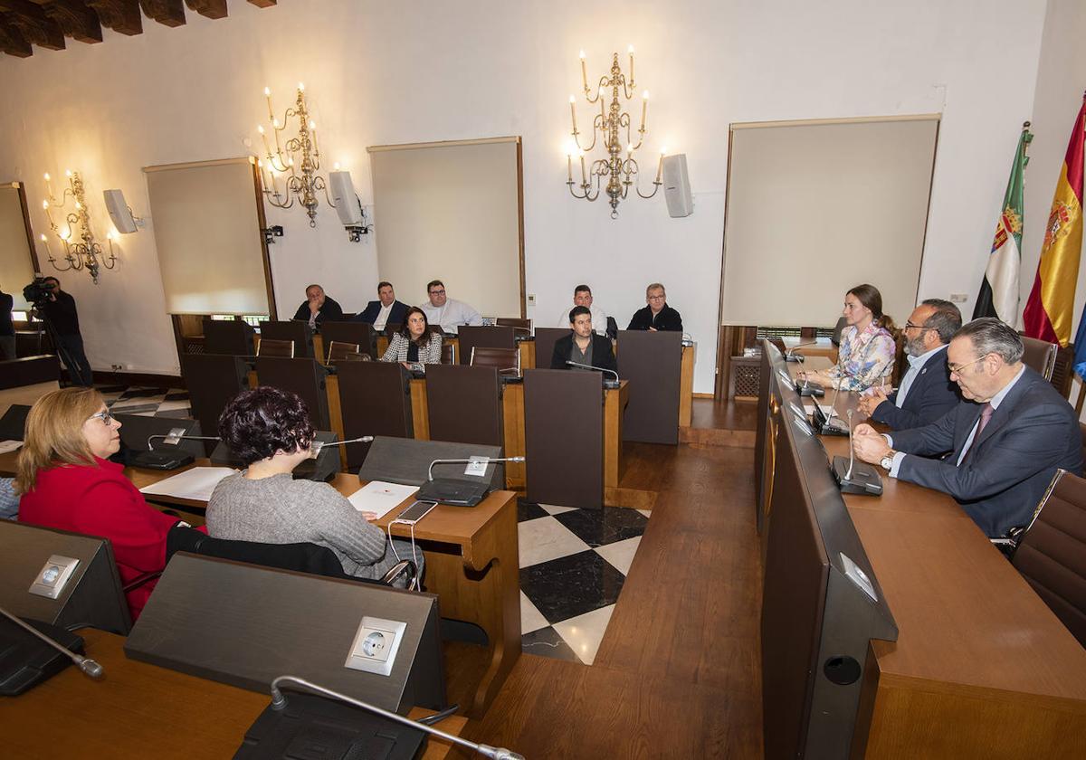 Los alcaldes de estos municipios se han reunido, en el Salón de Plenos del Palacio Provincial, con el presidente de la Diputación, Miguel Ángel Morales, y el presidente de Caja de Almendralejo, Fernando Palacios, además de la vicepresidenta de Hacienda y Administración General, Isabel Ruiz Correyero, para la firma de estos convenios que cuentan con un presupuesto total de 618.500 euros.