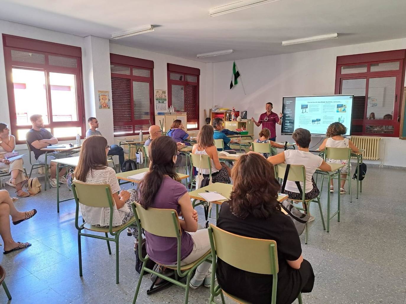 El claustro de docentes del Colegio Camilo Hernandez de Coria ha recibido una formación en capacitación digital para familiarizarse con los nuevos paneles digitales que se encuentran en las aulas desde el mes de junio gracias a la donación de la Consejería.