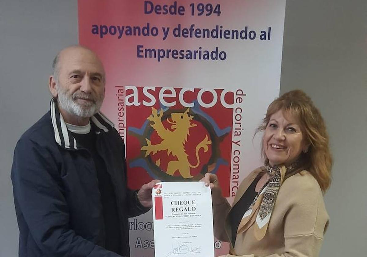 Como colofón a la campaña de San Valentín organizada por ASECOC «Comercio de Coria Enamora» se ha llevado a cabo, a través del Presidente de ... ASECOC, Jerónimo Sanguilinda, en las instalaciones de la Agrupación Empresarial, el acto de entrega del premio de una fantástica velada de San Valentín en «Restaurante Palacio Ducal de Alba» para dos personas con el que se quiso corresponder a las compras realizadas durante los días 9, 10, 12 y 14 de febrero.