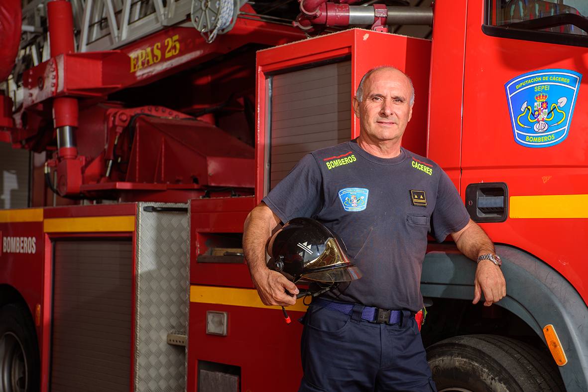 Juan Antonio Martín Valle, lleva 31 años de servicio, los últimos 9 como responsable del Parque de Bomberos de Coria