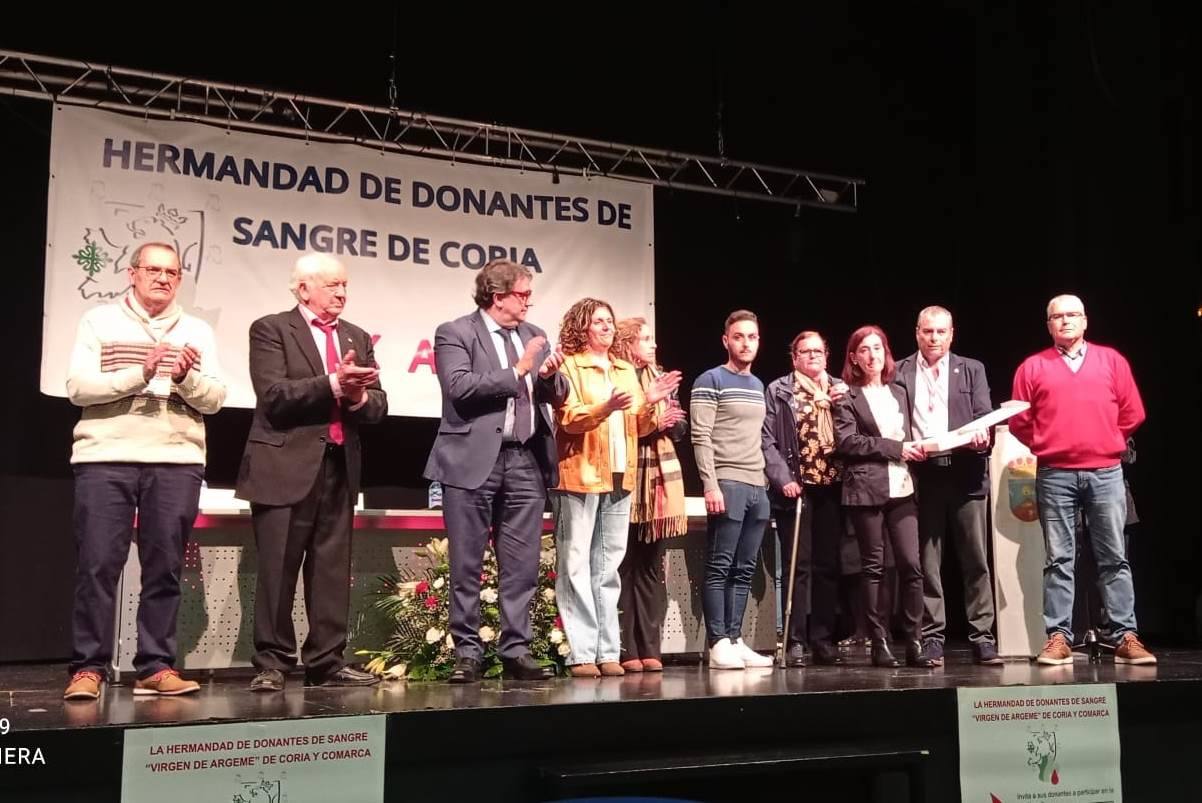 El presidente de la Hermandad, Valentín Macías Julián, felicitó a los que iban a ser distinguidos y señaló que España es la primera nación de referencia en donación de sangre y número de donantes que de forma voluntaria y altruista hacen con regularidad sus donaciones, pero que entre sus autonomías, Extremadura se encuentra por octava vez consecutiva en el primer puesto del índice de donaciones, contribuyendo a este éxito los donantes de la localidad, que desde hace varios años son los que más sangre aportan a la Hermandad de Coria, como lo demuestra el hecho de haber recibido algunos de ellos los mayores reconocimientos, al ser galardonados como «Grandes Donantes Regionales» y «Grandes Donantes de España».