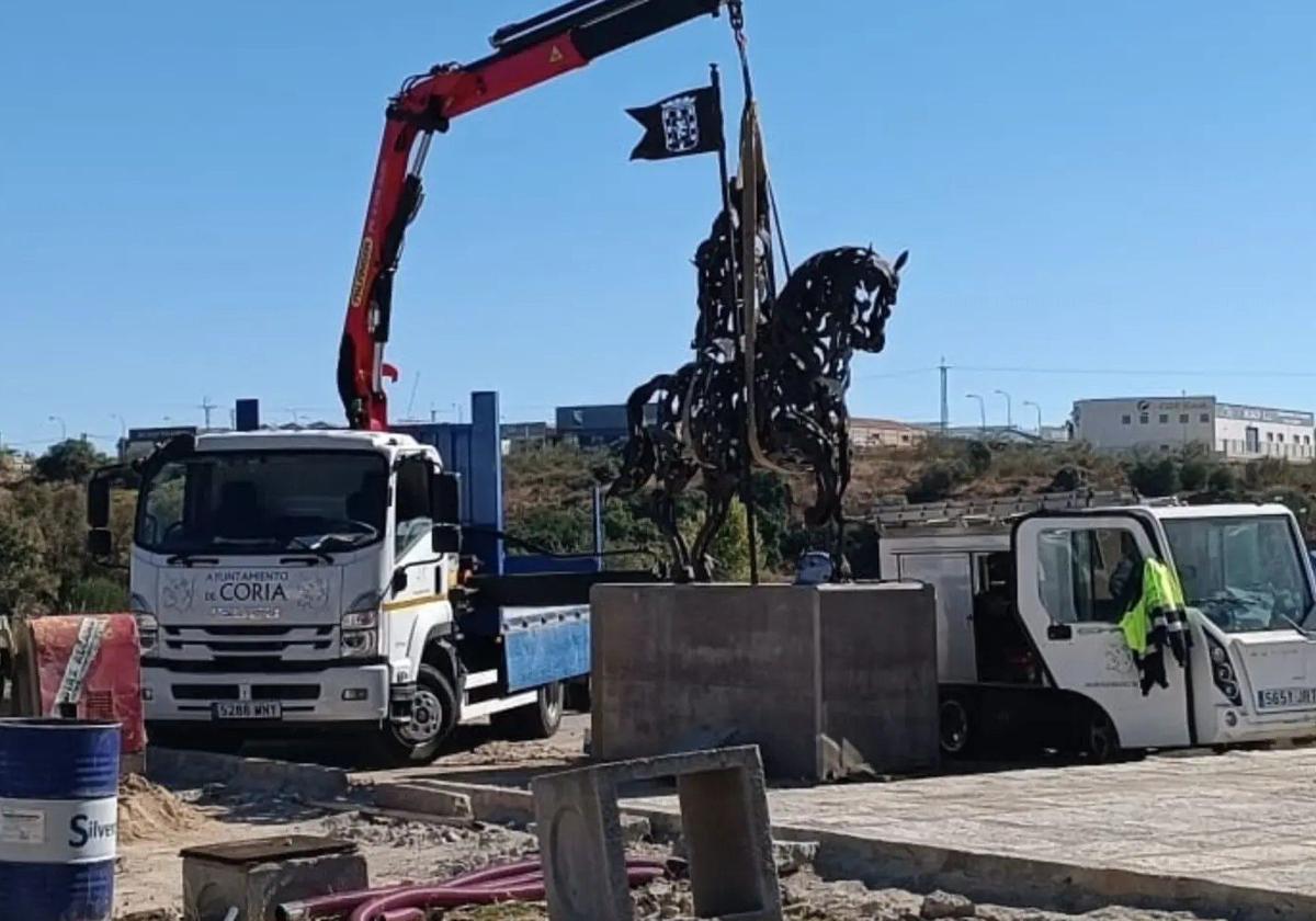 Instalan una escultura de Alfonso VII en la rotonda de la Avenida de Brasil