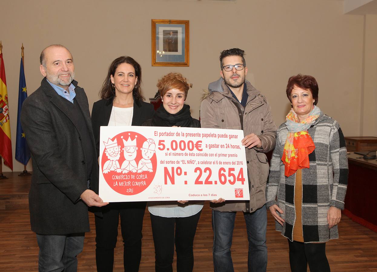 En el Ayuntamiento de Coria se ha entregado el cheque regalo de 5.000 euros de la campaña de Navidad Coria, tu mejor compra.