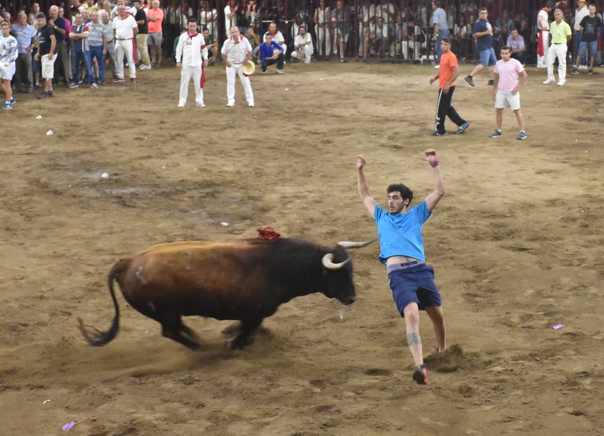 Salió a la plaza con mucha fuerza y poderío, aunque con poca codicia en barrotes donde se desgastó muy poco, con una presencia adecuada para las fiestas de San Juan. Desde el primer momento de la lidia impuso su ley, siendo respetado por los mozos, que le hicieron quites de mucho mérito, aunque nadie lo tanteó con la muleta. El toro realizó grandes carreras en persecución de los mozos y en más de una ocasión el oportuno apagón hizo que algunos se libraran de los afilados pitones del cornúpeta. A medida que transcurría la lidia se fue creciendo mostrando serio peligro en sus aladas carreras, que fueron muchas y espectaculares las que realizó en la plaza, donde tuvo toda la noche gran movilidad.