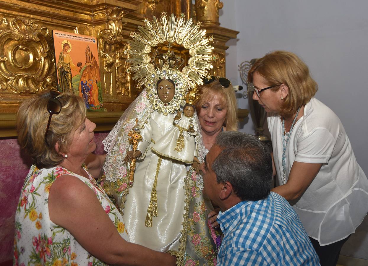 Finalizada las pujas la Virgen llegó a su Santuario alrededor de las 11 de la mañana. Seguidamente tuvo lugar el traslado de la Virgen hasta el lugar de la Misa de Campaña que fue presidida por el obispo de la Diócesis, Francisco Cerro Chaves, y con la presencia del Cabildo Catedralicio, Clero, Junta Directiva de la Cofradía y fieles en general.