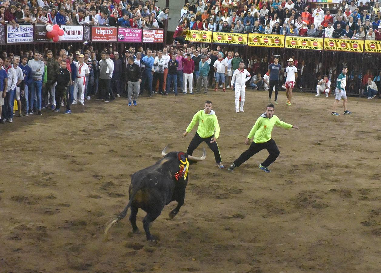 En la madrugada del día 28, tuvo lugar el encierro y lidia del toro Carambola, señalado con el número 37, guarismo 3, y perteneciente a ... la ganadería Arcadio Albarrán Olea, con procedencia Parladé-Juan Pedro Domecq. Un toro negro listón que realizó un rápido y limpio encierro arropado por los mansos. La temperatura reinante y las buenas cualidades del toro, invitaban a los corredores al lucimiento y el toro colaboró en la lidia en la plaza recibiendo un buen número de recortes, aunque Pascual quiso lucirse con la muleta y el toro no colaboró.