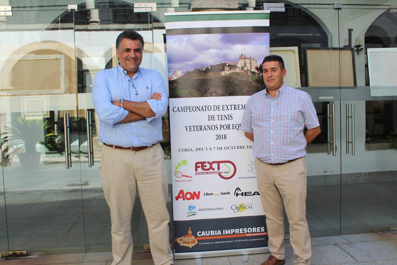 El alcalde, José Manuel García Ballestero, acompañado del concejal de Deportes, Juan Manuel Gutiérrez Rodríguez, junto al presidente del Club de Tenis Cauria, Roberto Jiménez Navarro, presentaron ayer esta prueba deportiva diseñada por la FEXT y dirigida a aquellos jugadores federados mayores de 35 años integrantes de clubes o asociaciones inscritas dentro de Extremadura.