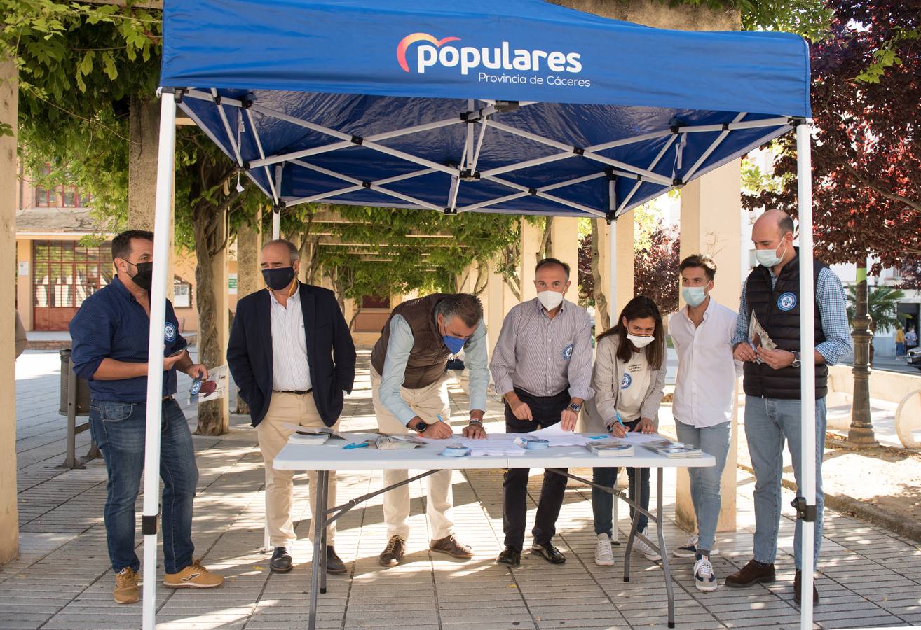 En la mañana de hoy miércoles, día 6 de octubre, y en la plaza de la Casa de la Cultura, el presidente del Partido Popular, Laureano León, acompañado del portavoz Popular en la Diputación, José Ángel Sánchez Juliá, alcalde de Coria, José Manuel García Ballestero y miembros del equipo de gobierno en el Ayuntamiento de Coria, recogieron firmas 'Por una sanidad digna en el medio rural'.