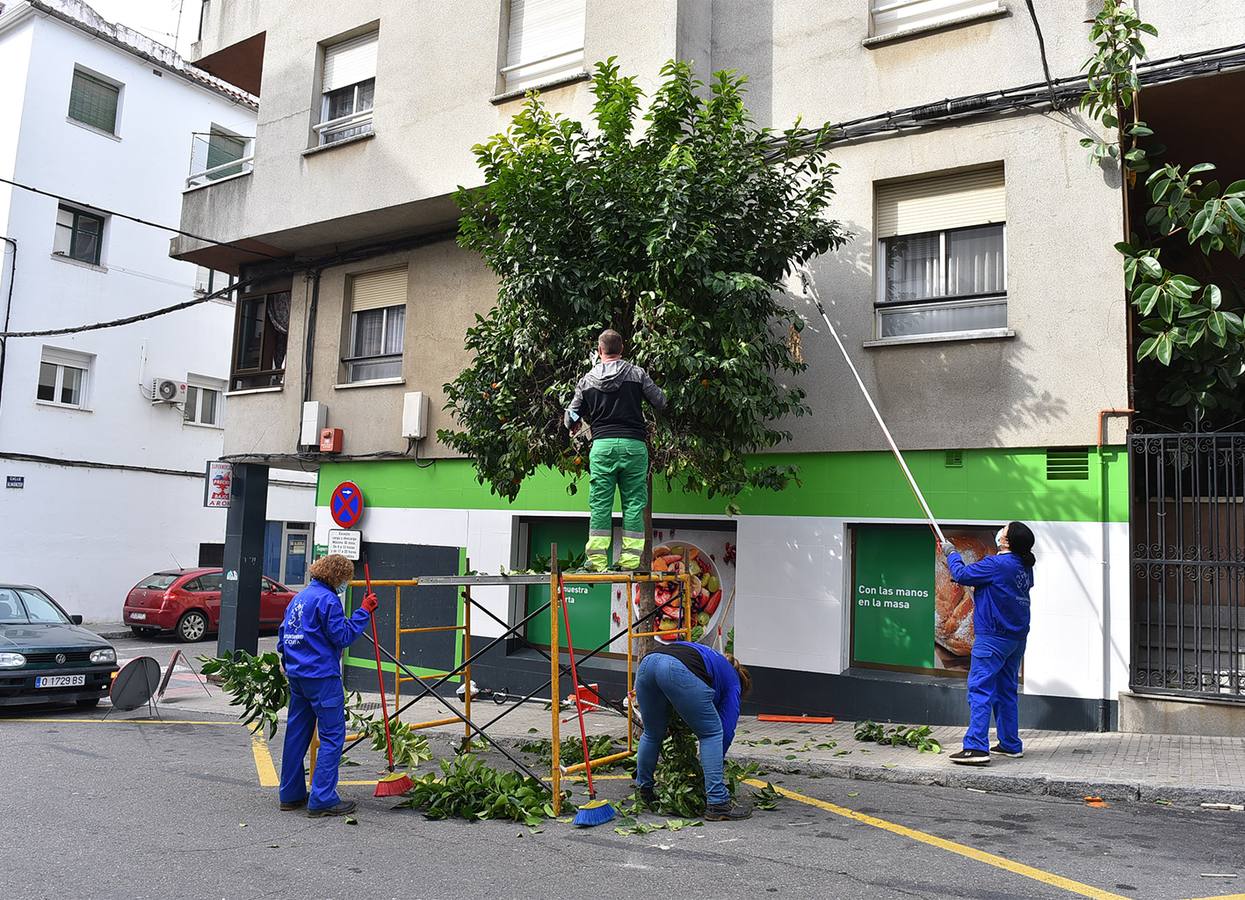 Los operarios de parques y jardines del Ayuntamiento de Coria están inmersos en la Campaña de poda y limpieza del arbolado urbano de la localidad, ... además de las pedanías de Puebla de Argeme y Rincón del Obispo.