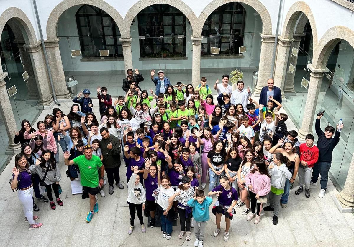El Ayuntamiento de Coria ha recibido a alumnos y docentes del colegio Camilo Hernández y CEIP «La Acequia», además de estudiantes y profesores de Idanha-a-Nova (Portugal), todos ellos participantes del proyecto 'El portugués abre puertas'.