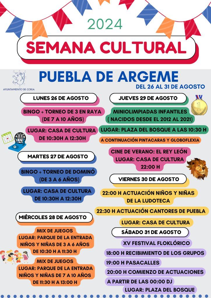La Pedanía Cauriense de Puebla de Argeme ya tiene todo preparado para vivir un año más su Semana Cultural, que ha dado comienzo el pasado ... día 26 de agosto y durará hasta el sábado día 31.