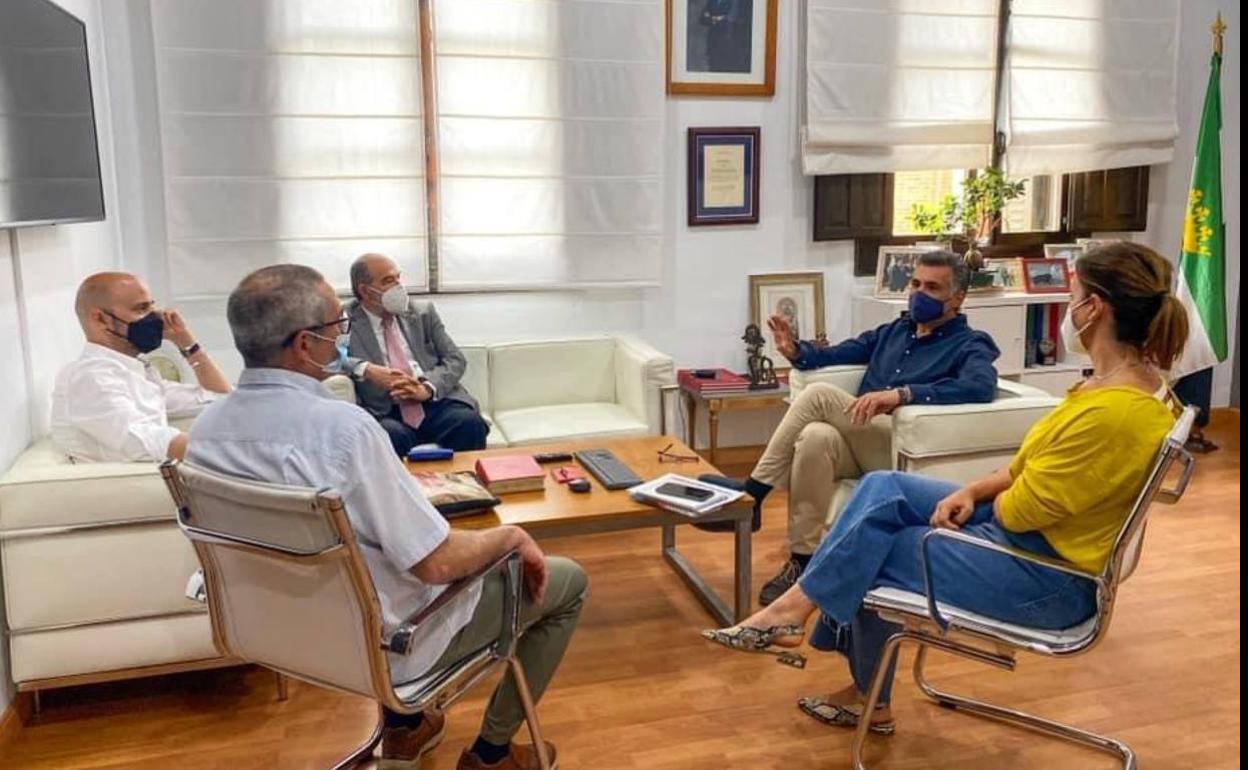 El alcalde de Coria, José Manuel García Ballestero, junto a la teniente de alcalde, Almudena Domingo Pirrongelli, mantuvo en el día de ayer una reunión con el director de Cáritas Diocesana Coria-Cáceres, Damián Jesús Niso, el gerente de Tajuela, Miguel Ángel Martín y el presidente de Coria, José Luis Hernández para el estudio de la puesta en marcha de un plan pionero en recogida de ropa.