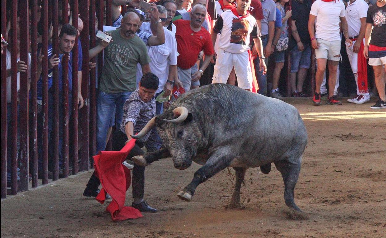 Grandes carreras, recortes espectaculares, remate con fuerza en los barrotes, algún que otro susto a los mozos y una simbiosis toro y aficionados, fue todo lo habido y por haber en una tarde memorable que marcará un hito en las Fiestas de San Juan. Destacar el susto monumental que dio a un corredor junto a los barrotes con una herida leve en una de las rodillas y que afortunadamente se repuso enseguida continuando en la lidia. Seguidamente un mozo le hizo un salto que puso a los espectadores de pie. Aparte de su bravura, también el toro tuvo un buen comportamiento en la muleta y capote de los maletillas que se percataron de la nobleza del animal.