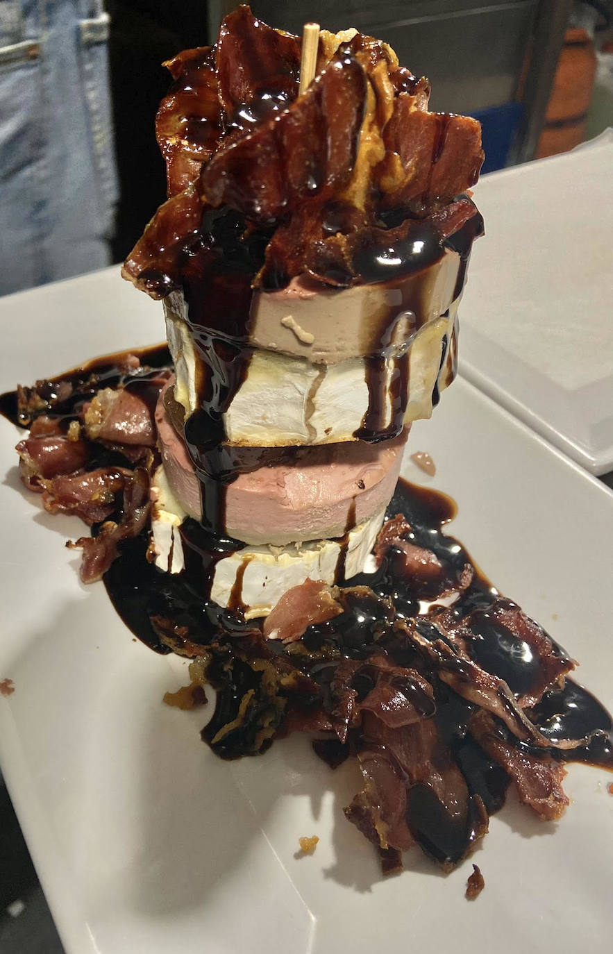 Los entrantes del tercer menú son ensalada César y Milhojas de rulo de cabra y foie de pato. Tras estos entrantes, se puede elegir entre estos diferentes segundos; bacalao a la dorada, chuletas de cordero a la miel o lagarto con Torta del Casar. Todo esto por 30 euros.