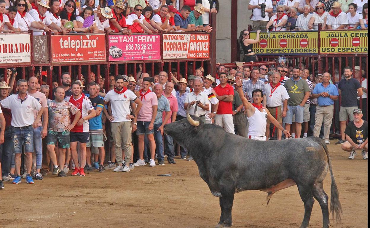Fue un toro que impuso su ley en la plaza con esa mirada desafiante a los tendidos donde en varias ocasiones intentaba lo imposible, pero eso sí, sembrando el miedo en muchos de los espectadores. Salió con mucho poderío realizando carreras endiabladas y rematando con fuerza en los barrotes, hasta el punto que el toro se erigió en dueño y señor del cotarro esperando que algún recortador se pasara de la raya. Nada de recortes ni saltos acrobáticos, pues el astado no lo permitía y los mozos ante el peligro que tenía el animal, se limitaron a que el tiempo pasara mientras Cigarrón se erigía en dueño absoluto en la plaza con esa mirada fija, desafiante y agresiva a los tendidos.