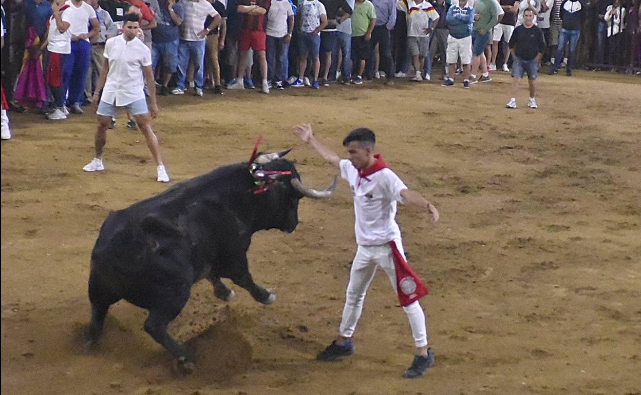 La salida a la plaza fue saludada con un arriesgado quiebro de un mozo y poco a poco los recortadores se percataron de la nobleza y bravura del animal realizándole un buen número de quiebros, exponiendo al máximo, y que fueron muy aplaudidos por los aficionados. Un toro que tuvo mucha brega en la plaza y que al final se tomó un respiro ubicándose en lugar tranquilo de la plaza. Los maletillas también quisieron probar fortuna con el capote y la muleta con pases de mucho mérito aprovechando la nobleza del animal.