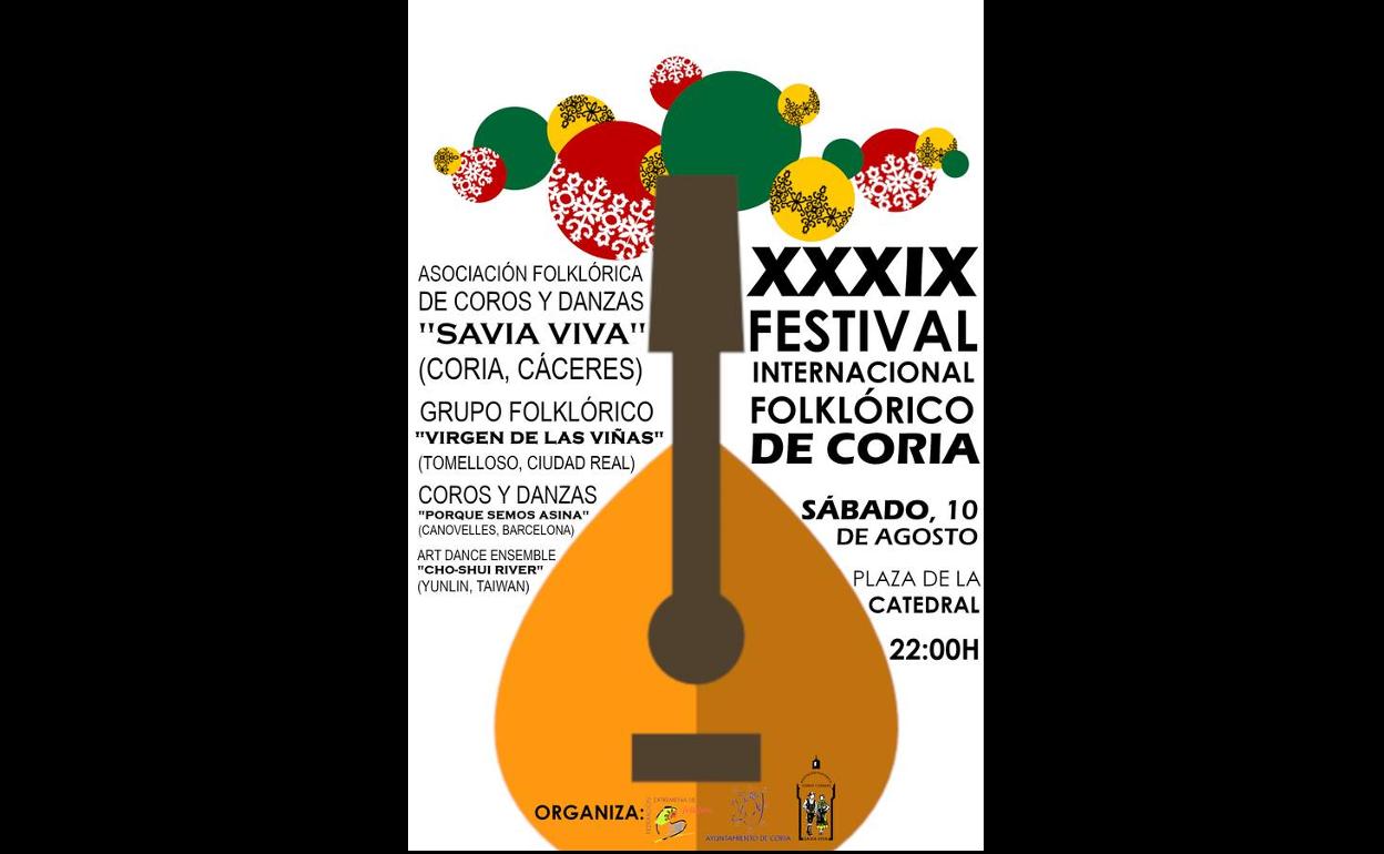 El próximo día 10 de agosto, a las 22 horas y en la plaza de la Catedral se llevará a cabo en la ciudad el ... XXXIX Festival Internacional de Folclore que organiza Savia Viva junto con el Ayuntamiento de Coria y la Federación Extremeña de Folclore.